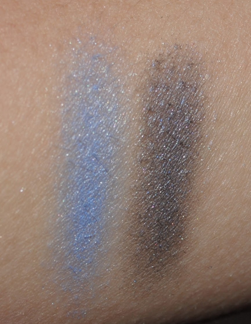 Nästa duo skugga heter Blåklint och består av två blå nyanser, en ljus klarblå och en lite mörkare gråblå. Dessa har lite skimmer men jag upplever även dessa som något pudriga, vilket gör att de beter sig på samma sätt som den matta duon.